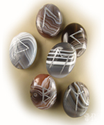 Рунический набор для мантики (гадания), изготовлен из черного агата с ручной гравировкой и ручной росписью золотистой краской. Используют для получения дополнительной защиты, магической силы. Можно по камню носить с собой в качестве амулета, в конце дня вкладывая их обратно в мешочек. Овальная форма рун сама по себе является талисманом для подзарядки космической энергией. Руны защищают своего владельца от неприятностей, сглаза и темного колдовства.